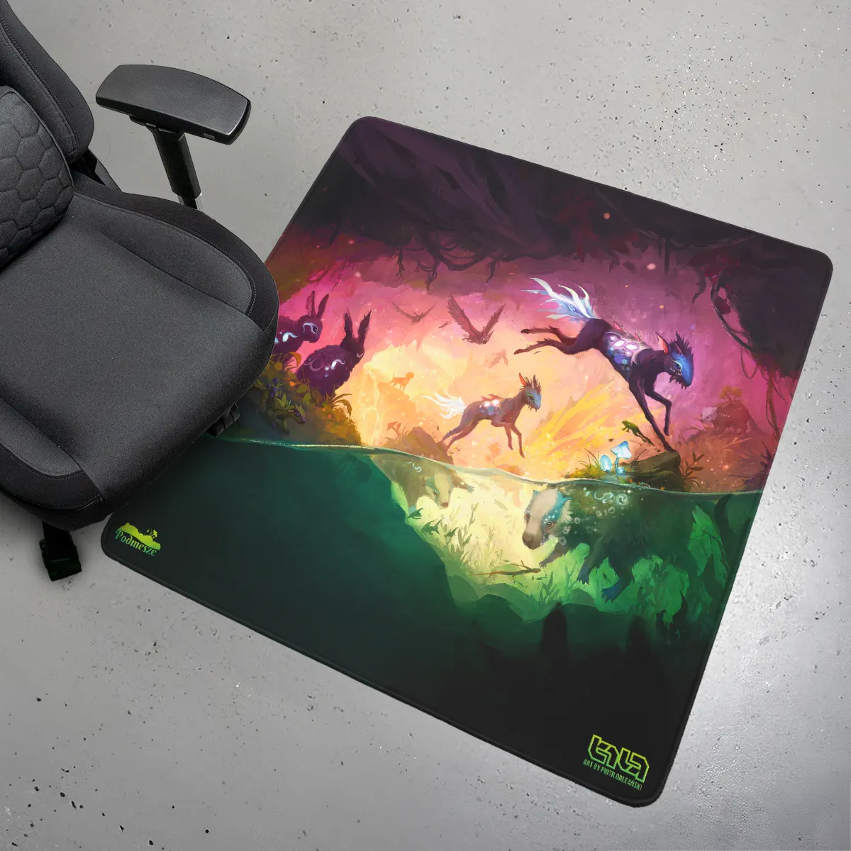 • Under your chair – no more scratches or slipping, even if your chair spins more than your frag count in a match.