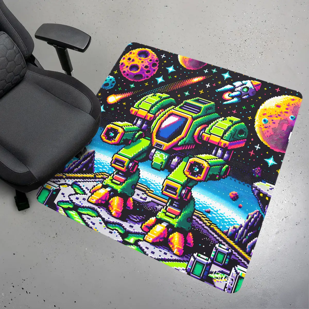 • Under your gear – PC, console, controller stand, mini fridge – everything stays stable and leaves no marks.
